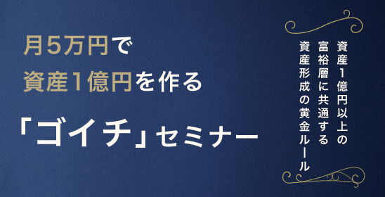 資産1億円以上の富裕層に共通する「資産運用の黄金ルール」月5万円で資産1億円を作る「ゴイチ」セミナー